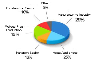 The following chart, the world's stainless steel consumption in 2002 is located in the proportional distribution by sector.