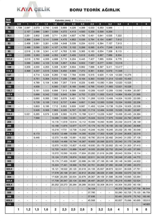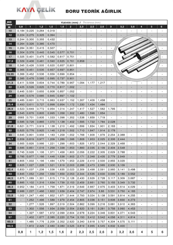 | | | | | | |  |  | | | | | | Paslanmaz Çelik Boru Paslanmaz borular ile ilgili tüm ebat ve ölçülerde boru bulabileceğiniz gibi, gerektiğinde özel üretim yaparak istenilen ebat ve ölçülerde üretim yaptırabilmekteyiz. Paslanmaz boru imalat aşamasında kullanılan paslanmaz çelik malzeme ile yapılan imalat, karbon ve az alaşımlı çeliklerden daha farklı özellikler taşırmaktadır. Bu farklılık, genellikle malzemelerin akma dayanıklılığı ile pekleşme davranışlarının farklı, farklı olmasından kaynaklanabilmektedir. Unutulmaması gereken bir hususta şudur ki, Paslanmaz çelikten imal edilen paslanmaz borular da en önemli etken akma ve çekme dayanıklılığı, sürekli pekişme özelliği ve kesit daralmasıdır. Paslanmaz Borulara şekil verebilmek için ortak özellik olarak şöyle sıralamak mümkündür. 1- Paslanmaz çelikten imal edilen paslanmaz boruların dayanıklılığı, sertliği ve sürekliği genellikle çok daha yüksek olmalıdır. 2- Daha hızlı pekleşirler (yani şekil verdikçe dayanıma süreci hızla artar) 3- Paslanmaz boruların imalatı sonunda parça yüzeyinde korozyona karşı koruyucu bir oksit filmine sahip olması gerektiği dikkate kesinlikle alınmalıdır, aksi halde istenilen kalite elde edilememektedir. Bilindiği gibi Paslanmaz boru dayanıklılığı ve dolayısıyla kullanım ömrü en uzun ömürlü paslanmaz ürünlerinden biridir, Paslanmaz boruların kullanıcıları iyi bilmektedirler ki kaliteden ödün verilerek üretilen paslanmaz borular ilerleyen zamanlarda mutlaka sorun çıkarmaktadırlar. Paslanmaz borunun bazı kullanım alanları şunlardır: Petrol Boru Hatları,Temel Kazıkları,Su Dağıtım Hatları, Endüstriyel Boru Ağları, Çelik Yapılar, Rafineriler, Doğalgaz Boru Hatları, Basınçlı Hava Hatları ve, Özel Amaçlı Kullanımlardır.  ? Paslanmaz Boru Ölçüleri | | | | | |